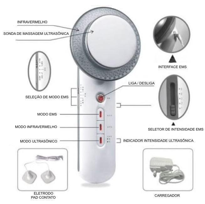 2. O Massageador Ultrassônico Lipo Cavitação 3 em 1 tem três funções principais: